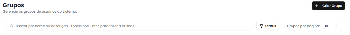 - 🔍 Filtre grupos por nome, descrição ou status (ativo/inativo)