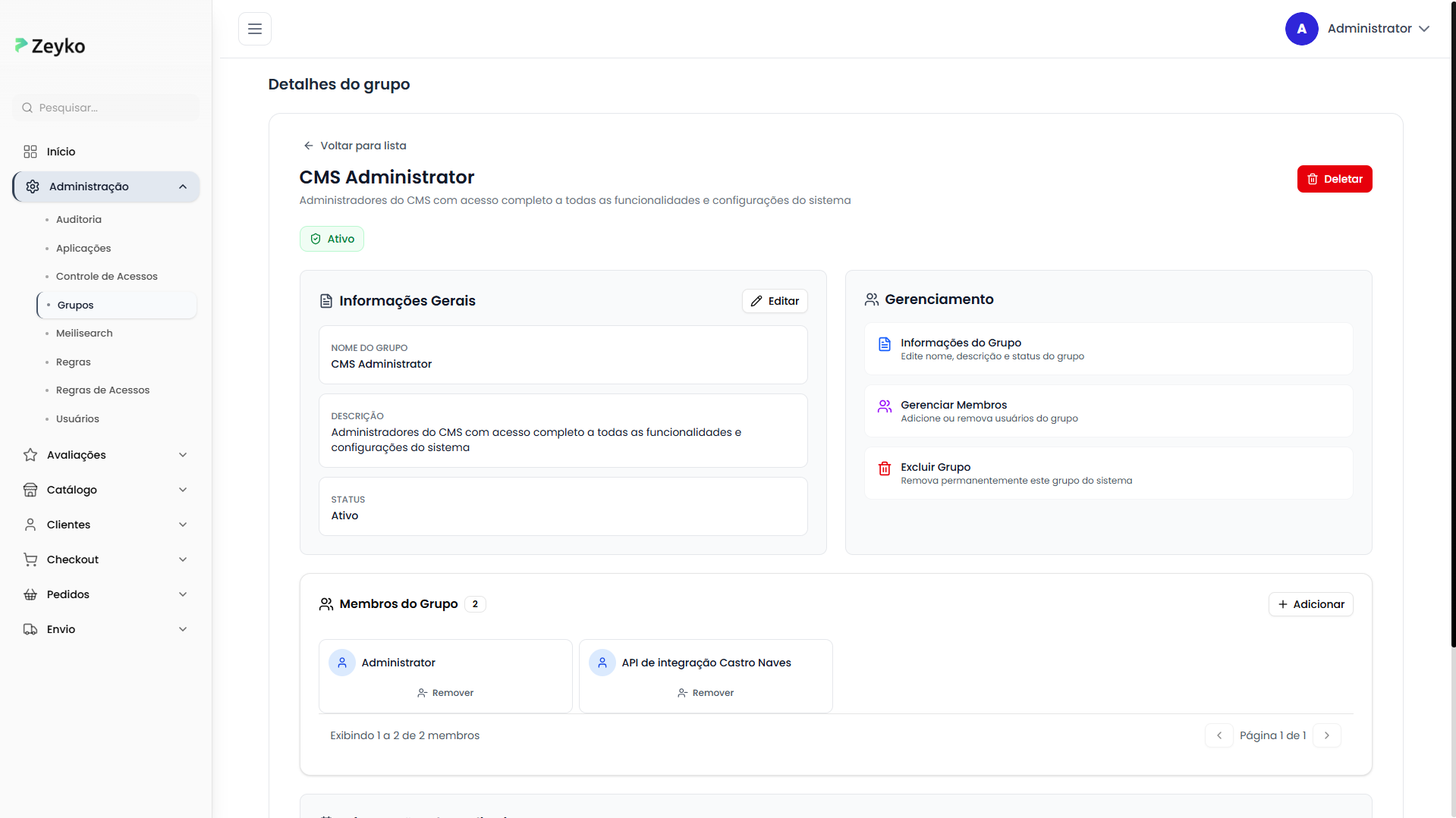 | Status Ativo | Grupo disponível para uso e associação de usuários |