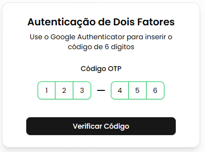 Após validar email e senha, o sistema exibirá a tela de código 2FA: