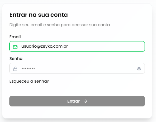 - Quando ambos os campos estiverem preenchidos corretamente, o botão "Entrar" ficará ativo