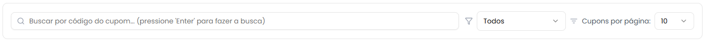 - Barra de busca por código do cupom (pressione Enter para buscar)