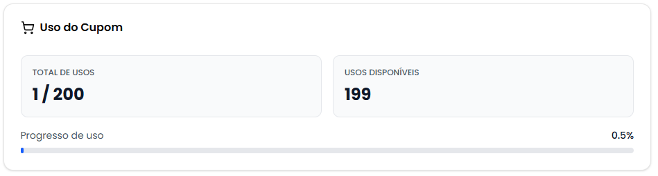 | Limite de Uso | Quantidade máxima de vezes que o cupom pode ser usado |