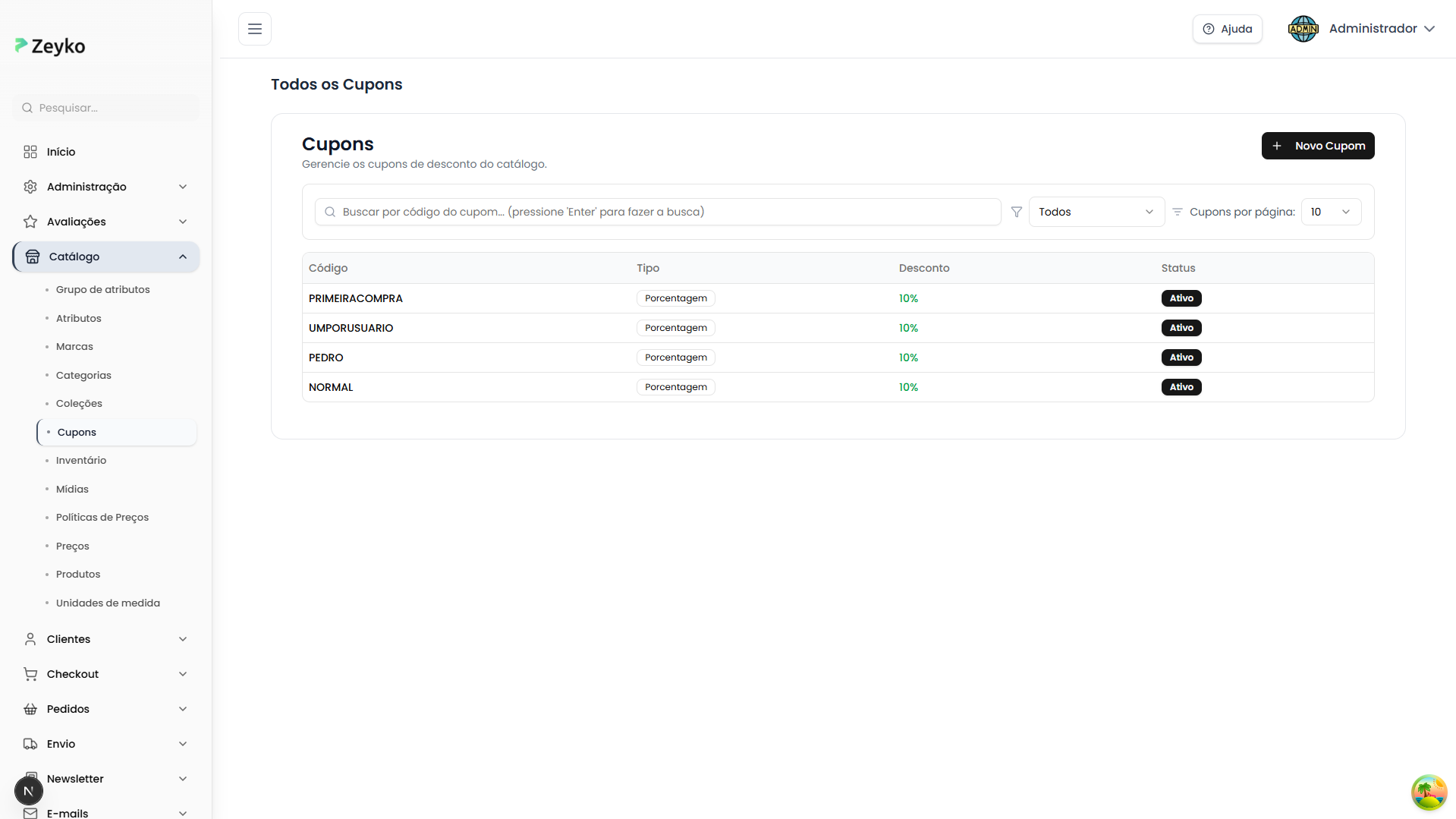 Bem-vindo ao guia completo de Cupons do CMS E-commerce! Este manual detalhado irá guiá-lo através de todas as funcionalidades para criar, gerenciar e monitorar os cupons de desconto do seu catálogo.