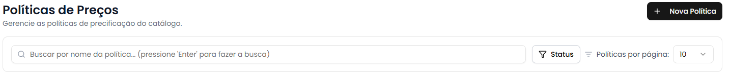- Subtítulo "Gerencie as políticas de precificação do catálogo"