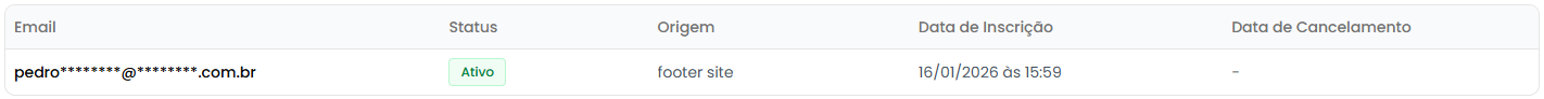 - Badge Verde "Ativo": Usuário com inscrição ativa na newsletter