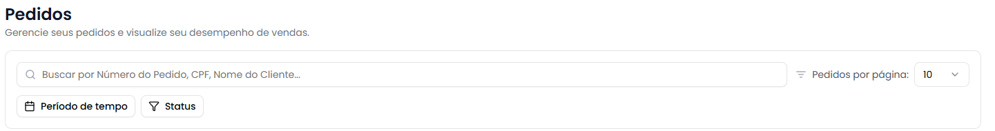 O filtro de período permite visualizar pedidos de um intervalo de tempo específico.