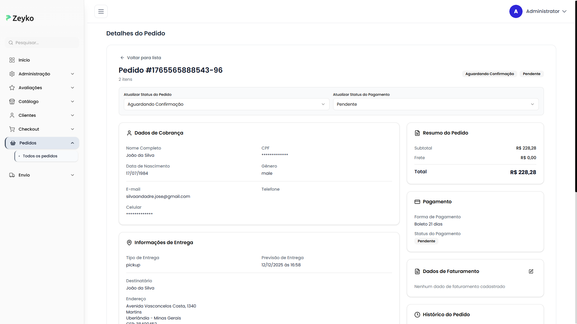- 📊 Acompanhe informações detalhadas como valor total, quantidade de produtos e forma de pagamento