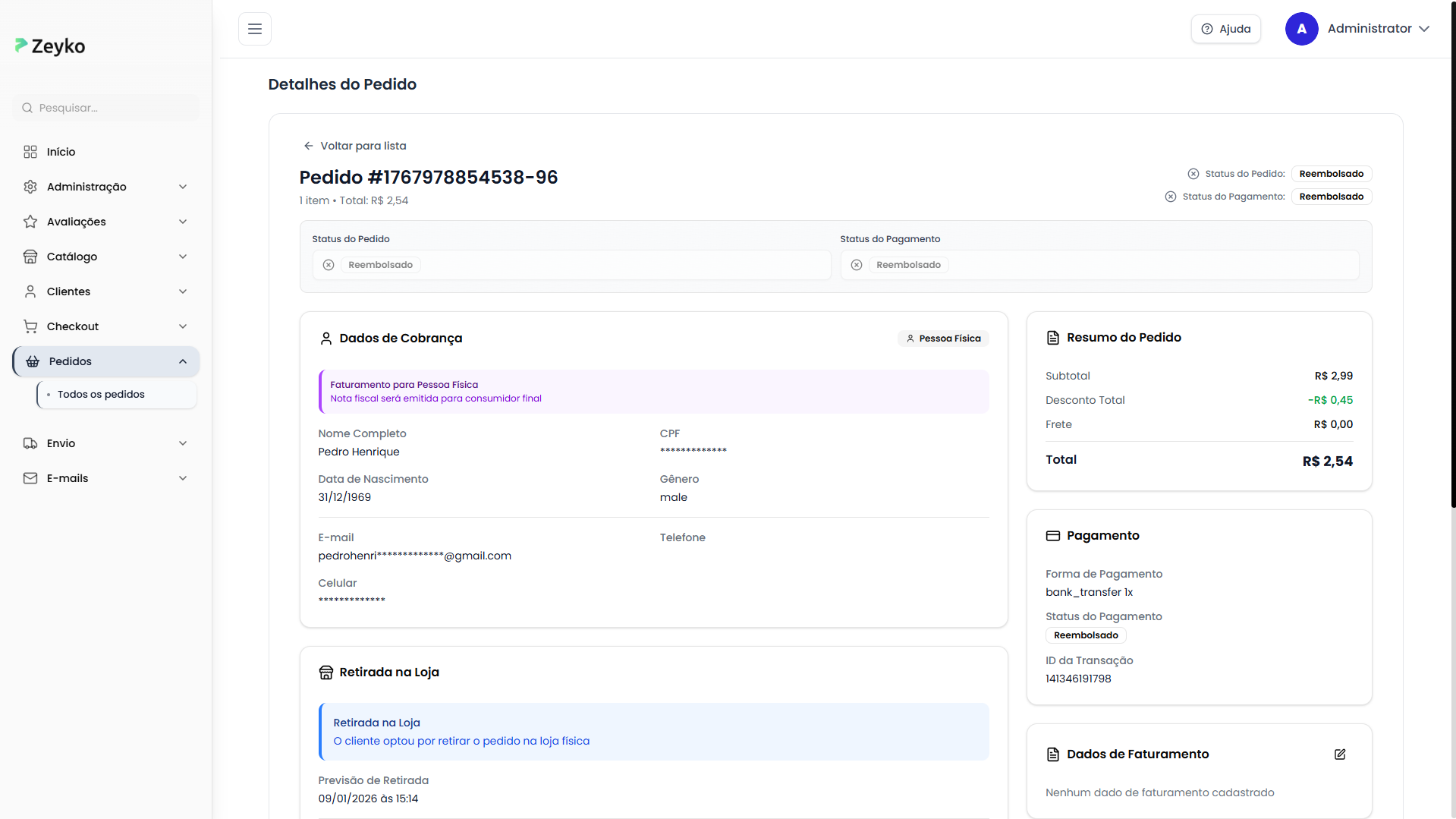 | Dados de Cobrança | Informações fiscais de quem comprou (CPF/CNPJ) |