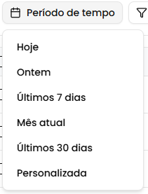 | Preset | Opção predefinida de período (hoje, ontem, etc.) |