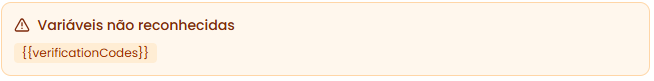 | Variável | Marcador no formato {{nome}} substituído por valores reais no envio |